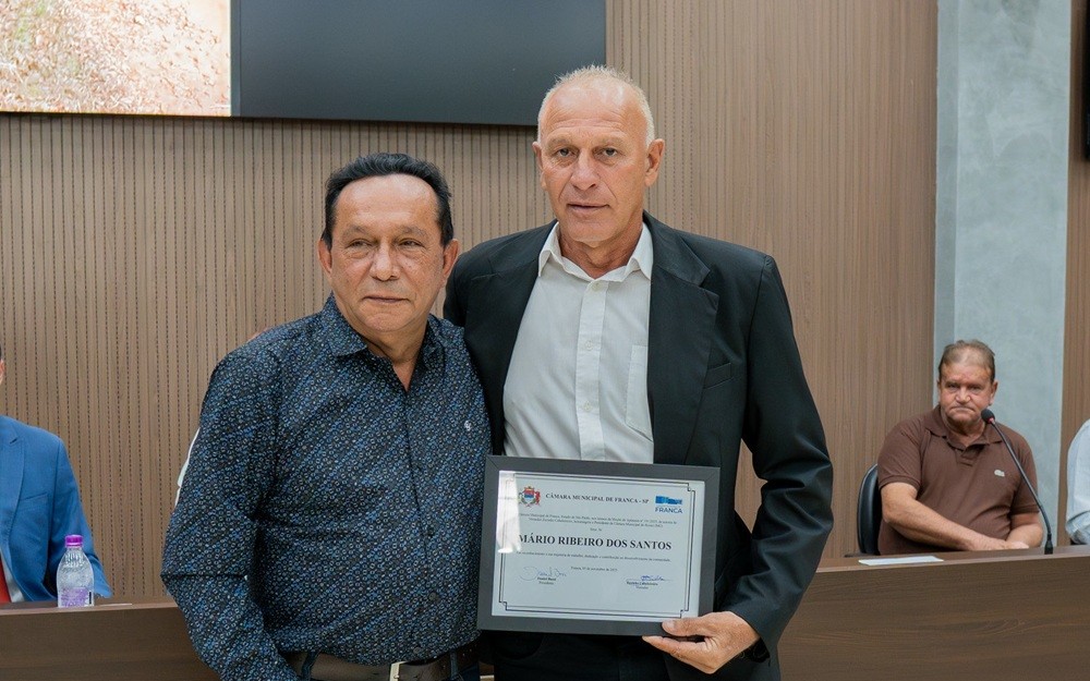 A Câmara Municipal de Franca realizou, na 46ª Sessão Ordinária de 18 de novembro, a entrega de três Moções de Aplausos a lideranças de Ibiraci (MG). As homenagens, propostas pelo vereador Zezinho Cabeleireiro e aprovadas pelo plenário, contemplaram o prefeito Paulo Cézar de Oliveira, o presidente da Câmara de Ibiraci, Mário Ribeiro dos Santos, e o produtor rural Ronan de Oliveira Peixoto. As moções reconheceram o empenho de cada um no desenvolvimento regional, especialmente pela conclusão da ponte que liga Franca a Ibiraci.